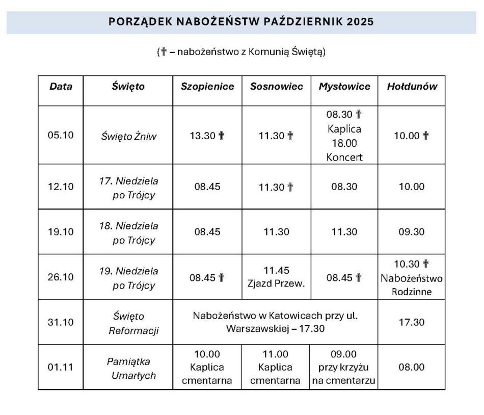 Ogłoszenia dla parafii Ewangelickiego Kwartetu – 17. Niedziela po Trójcy – 12 października 2025 r.